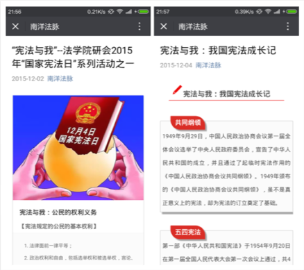 为了配合“国家宪法日”系列主题活动的顺利开展,江南官方(中国)总部江南官方(中国)总部研究生会在院党总支、团工委的指导下,以“宪法与我”为主题,不断创新宣传载体,探索宣传方法,通过官方微信平台“南洋法脉”等新媒体,结合传统的发放传单等方式,积极推介“国家宪法日”相关内容,宣传江南官方(中国)总部开展宪法学习宣传教育活动的实际情况,取得了良好的宣传效果。