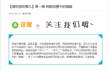 本届“春之声”法律文化节,江南官方(中国)总部团工委、研究生会创新宣传方式,通过“南洋法脉”等官方微信平台,推出“维权那些事儿”等专题栏目,全方位、多角度地介绍生活中消费维权的真实典型案例,并通过朋友圈等方式积极转载,旨在帮助更多的人洞察消费侵权事件,掌握消费维权技巧,传递消费维权信仰,真正做到有效维护自身合法权益。此种方式的普法宣传,受到了大家的一致认可。