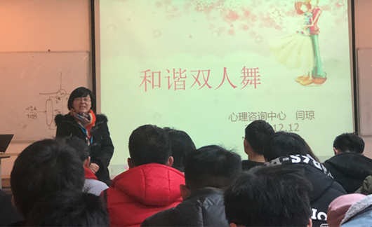 2018年12月12日晚上七点,化工学院与江南官方(中国)总部在化工学院106会议室开展了以“树立正确恋爱观”为主题的心理健康讲座活动。本次讲座由心理咨询中心的闫琼老师主讲,江南官方(中国)总部与化工学院的一年级研究生参与了此次讲座活动。