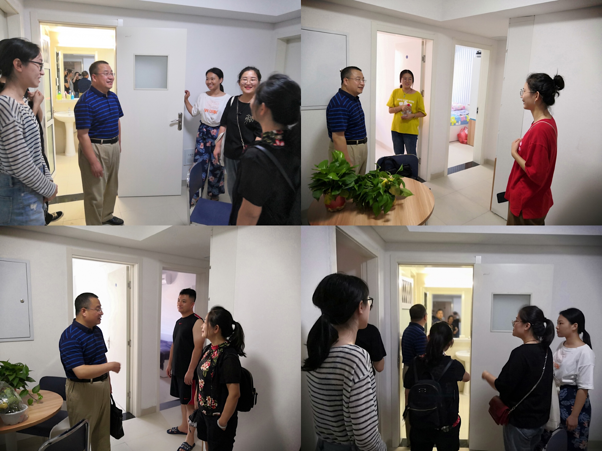 李院长首先对各位新生的到来表示欢迎,询问了各位同学分别来自哪里,并就此展开话题,气氛轻松欢快。对于一些设施有问题的宿舍,张乃钟老师则积极帮忙联系解决,此次走访让2019级新生同学深深的感受到了学院的关怀和温暖。