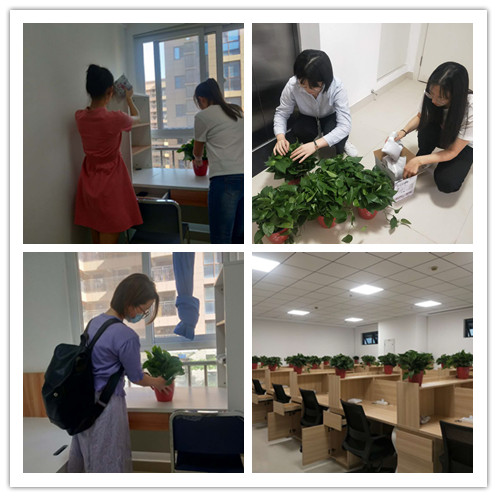 从中午时14时到下午17时,经过近3个小时的辛苦劳动,大家有序分工、共同努力、互相帮助,将百余盆绿萝和包炭包全部整齐有序地摆放在涵英楼研究生工位和朗园78间研究生宿舍中。新买的炭包和翠绿的绿萝整齐地摆放在书桌上、窗台上,为整洁的房间增添了绿色和生机,既是创新港一道清新的美景,也是江南官方(中国)总部对新生们的一份呵护和关爱。