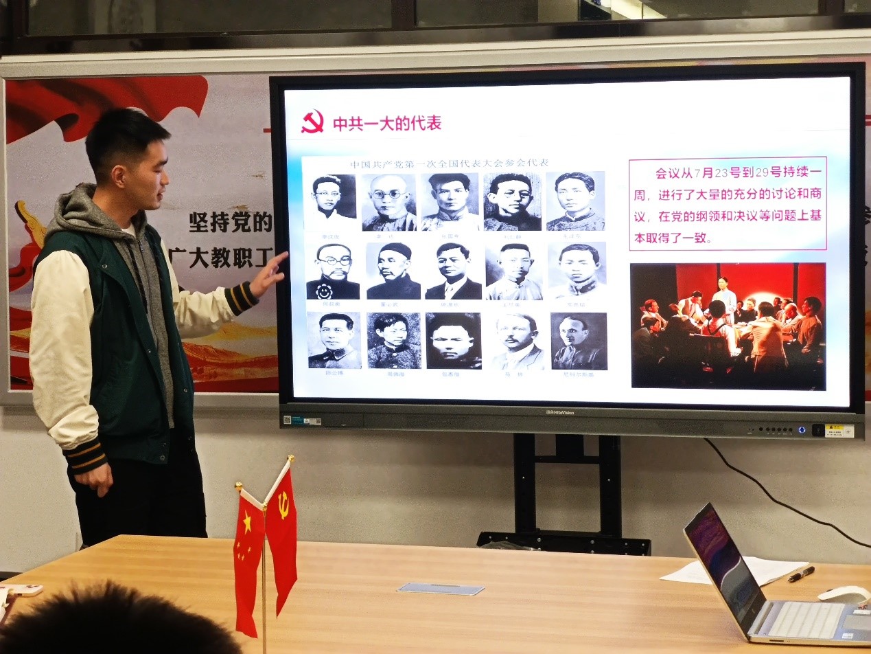 团员高欢欢也积极发言,她提到,“非常荣幸此次作为团员参加党支部的主题宣讲活动,张雷奇同志在分享中谈到新中国成立时参加开国大典、见证革命胜利果实的中共一大代表仅有毛泽东和董必武,从13位一大代表的命运中,我们能看到中国共产党一步步走来,非常不容易,为什么有些人能够为了党和人民的事业,矢志不渝、鞠躬尽瘁、死而后已,而为什么有些人面对复杂的局势经不起考验,叛党投敌,沦为汉奸。13位代表截然不同的结局,让我们深深感慨的同时,也留下深刻的启示,那就是坚定的马克思主义信念是共产党人的政治灵魂,是共产党人经受住任何考验的精神支柱。革命果实得来不易,我辈青年必当倍感珍惜!”