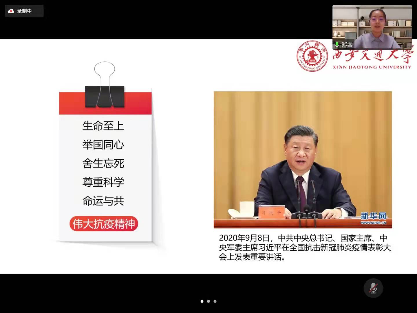 接着,王若楠、张文倩带领大家学习《通知》文件精神。张文倩首先向同学们播放了西安2021抗疫视频,向大家展示出疫情期间西安各行各业齐心协力、共同抗疫的情形,以及江南官方(中国)总部广大师生在疫情期间的携手努力。视频中熟悉的陕西方言、这座城市我们所走过的每一条街道,都让大家倍感亲切也分外暖心。